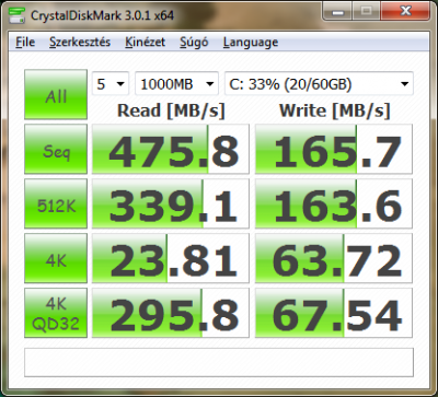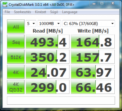 (#34566) magedla: ez azert van, mert Nalad egy Samsung hajtja a rendszered, ami nem hasznal tomoritesi eljarast (igy akarmelyik modszerrel merheted, szinte ugyanazt mutatja), viszont neki egy SandForce vezerlos SSD-je van, ami igen, es a CDM 0 Filles tesztje erosen, vagy jol tomoritheto adatokkal mer, az meg nem tukrozi minden esetben a valosagot (mert nem lehet mindig minden allomany jol tomoritheto).