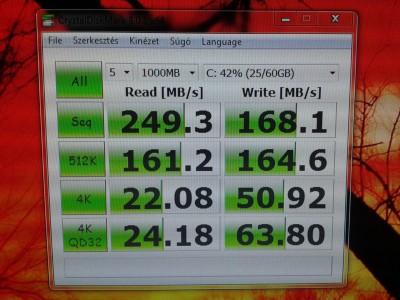 Elözményeket még csak most kezdem olvasgatni veled kapcsolatban ,de az én Corsair Force3 60Gb SSD-m a Te értékeid dupláját hozza ugyanazon beállítások mellett.