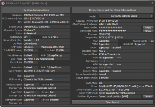 Igen, minden rendben, csak mindig a legújabb verziót használjátok, amely minden esetben itt lesz megtalálható.(Majd megkérem Bodor-t (de lehet, hogy olvassa is itt majd), hogy a cikkét bővítse ki a progi ismertetésével. Ott le lesz írva, hogy mely infók azok, amelyek a legfontosabbak az SSD szempontjából és ha azok rendben vannak, akkor igazából csak sebességet lehet mérni. Ha esetleg nem érne rá Bodor, akkor majd leírom én ott, ahonnan a progit le lehet tölteni. Azért nem különböztettem meg külön a fontos infókat, mert a későbbiekben alapjaiban fog megváltozni a progi megjelenése.)