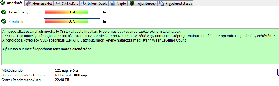 Az átlagosnál jóval erősebb használatnak volt kitéve az SSD (én időarányosan ennek ötödét se írtam az SSD-mre, pedig nincs kímélve), így ennek megfelelő a 80%-os kondi. Ez csak annyit jelent, hogy hasonló terheléssel még 4x ennyi ideig megy megbízhatóan (a valóságban meg akár többször ennyi ideig is). Ha te nem fogod ilyen intenzíven használni, akkor sokkal többet is ki fog bírni.