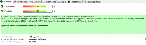 Azt azért tudni kell, hogy a kondi csak (vagy főleg) az írás mennyiségére támaszkodva ad infót (mivel a memóriacellák csak 3000-5000 alkalommal újraírhatóak), nem ad támpontot a vezérlő vagy egyéb egységek meghibásodásra. -