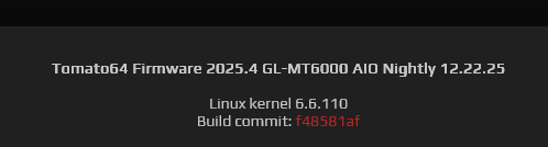 About: Tomato64 Firmware 2025.4 GL-MT6000 AIO Nightly 12.07.25