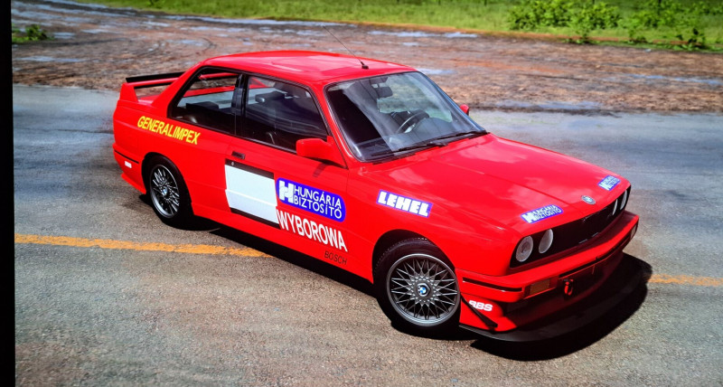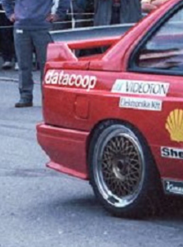 Hálás köszönet! Az autó hátuljáról nincs képem, oda esetleg mehetne Hungária Bizosítós logó, alulra pedig Bosch ha odafér, motorháztetőn BHG Hungary felirat volt 1987-ben illetve a szélvédőn Interag. Alul BBS és Budapest Bank felirat.