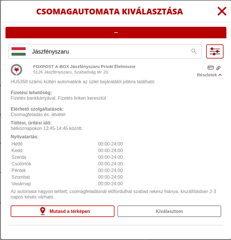 Foxpost-al kérte, a településén csak 1 fox automata van.