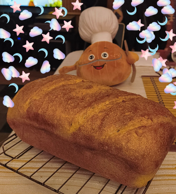 470g kenyérliszt, 330g víz, 10g só, 95g kovász(igazi)