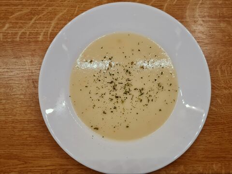 Vöröshagyma krémleves kókusztejjelEz 3-4 nagy adagra elég. 5 fej nagy vöröshagymát és 4-5 fokhagymagerezdet lepirítottam üvegesre, az nem baj ha kicsit meg is barnul. Ekkor mehet bele víz vagy hús alaplé, nem kell sok, épphogy csak ellepje és lehet rotyogtatni kb. 10 percig. Utána én botmixerrel összeturmixoltam és ekkor ment bele a 165-200ml kókusztej, só és bors ízlés szerint és még lehet rotyogtatni pár percig.
