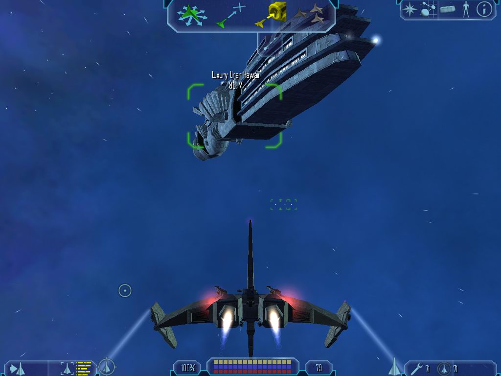 Nem tudom megállni, de nekem anno a lucasartsos pajzs- és fegyverkezelés jobban tetszett. Nameg, mondjuk ezt betudom annak, hogy fáradt vagyok, szóval néha harc közben ha eltrafálok egy aszteroidát és megpördülök, hirtelen túl sok információ zúdul rám. S bizony néha észreveszem hogy éppen az egeremet üldözöm nagy erőkkel, nem pedig a kis piros nyilat.