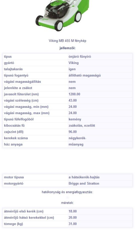 Hali! Egy 24 éves (2002-es gyártású), Viking MB455 H típusú (Briggs motoros) fűnyíróról van szó.
