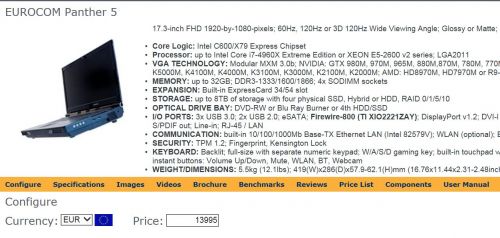 Azért nézd meg a feature-t is: Cserélhető cpu, vga, asztali Cpu, MXM videokari, unlocked vbios....hol kapsz ilyet máshol.
