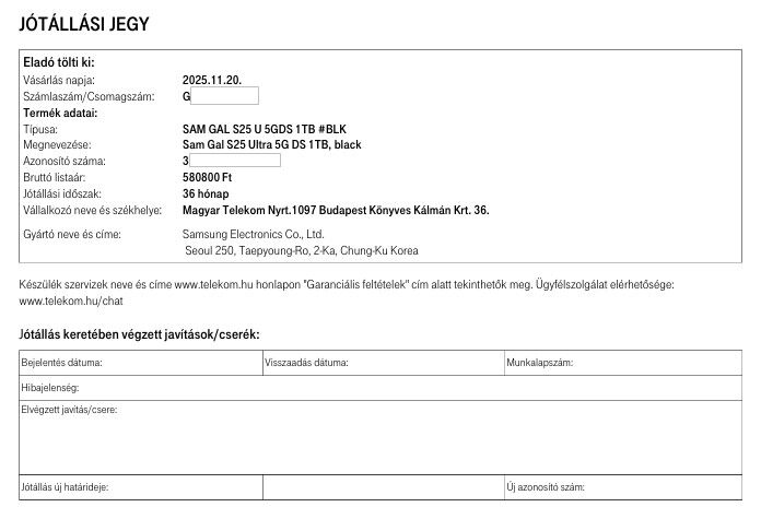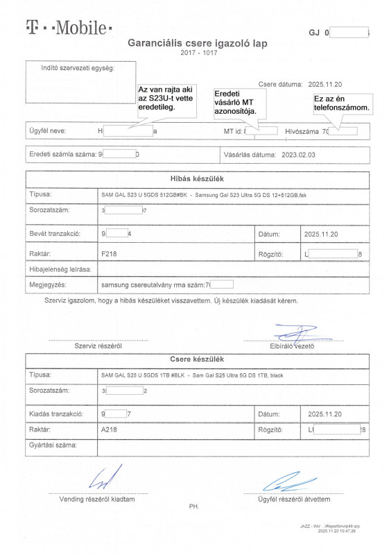 Ezt a Samsung márkaszerviz a gyakorlatban el is ismerte — a te nevedre állította ki a csereutalványt, ami teljes bizonyíték arra, hogy a gyártó elismeri tulajdonosi jogosultságodat.🔍 2. Mi az, amit a Telekom nem köteles elismerni?