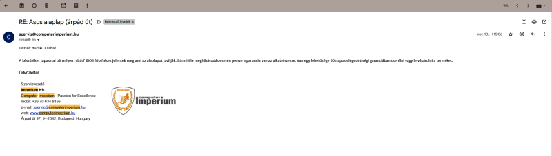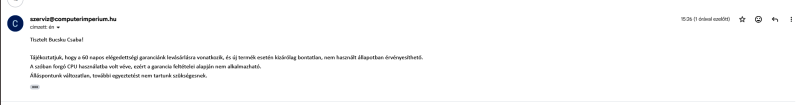 Srácok, próbálom rövidre fogni, de érdekelne a véleményetek. November 11.-én elvittem az asztali PC-met a ComputerImperialba, amit 4 éve ők raktak össze, Újpest árpád ut 97. [link] Egy fejlesztésre, ami alaplap, cpu, memória, volt elsődlegesen, rájuk bíztam a döntést, igazából amit gondoltam, hogy az előző az Intel volt, szeretnék AMD-t, és ha jól olvastam a 7800X3D az jó, ehhez kérnék egy alaplapot ddr5-ös ramot stb, összerakták a gépet, asus prime b850 alaplap, g-skill 2x16gb ram és a 7800X3D, amikor mentem a gépért, mondta a srác, hogy egy új alaplapot kaptam ami elvileg a 9000-es szériához lett fejlesztve, és ő már belerakta volna a 9800x3d-t, mondtam hogy nem érdekel a többlet, tegyük bele, de azt mondta a srác, már össze van rakva, próbáljam ki a 7800-at, az is jó, de ha nem, van 60 napos elégedettségi garancia, vissza viszem és cserélik, na most emailban többször is leírták mikor jeleztem hogy ráfizetek de szeretném a 9800-at, írták érvényes a 60 napos elégedettségi garancia, de most a mai nap elálltak tőle, mondván hogy az elégedettségi garancia bontatlan újra vonatkozik, de eleve ők rakták össze a gépet, ha nem lehet kibontani hogyan érvénysül az elégedettségi garancia kipróbálás nélkül?