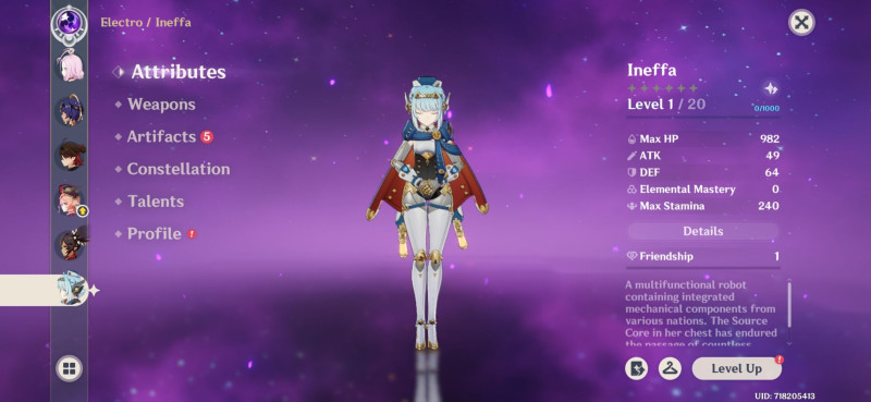 Flinst megértem, mert volt rá vizuális utalás, hogy az archon szint közelében van, de Lauma és Nefer esetében nem kaptam ilyenfajta megerősítést. Az a meggyőződésem, hogy Ineffa egymaga jóval erősebb, mint azok ketten együtt. Ha már feltétel, hogy női karakter, Nod-Krai, és játszható. De tényleg erő szempontjából jóval relevánsabbak lettek volna Arle, Sandrona, Nicole és Varka, Durin, Albedo Ja hogy a többségük nem játszható, meg nem Nod-Krai karakter?