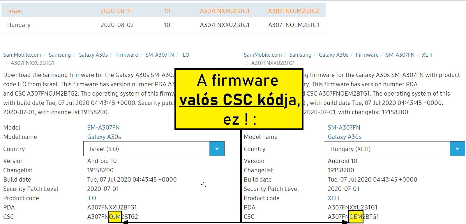 CSC:' -hez írt kódsorban, megkeressük az alábbi -vastagon kiemelt & aláhúzott- helyen írt ⇒3db karaktert :Ez (⇑) !! jelöli, a készülékünkön aktuálisan futó 'firmware valós CSC'-kódját !