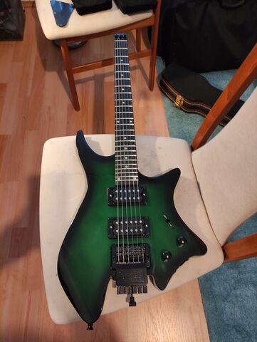 Tűrhetően összerakott gitár érzetét kelti. A nyaka egyenes, a bundok között van egy-két kiálló, azt majd eldolgozom, nem nagy ügy. A pickupváltó gombját szerintem túlságosan rányomták, mert a két szélső állásba nem lehet kapcsolni. Megpróbálom leszedni róla, de nagyon rá van szorulva. Így még csak középállásban tudtam tesztelni a hangját, de egyáltalán nem rossz. A nyaka is kényelmes, és tök könnyű a gitár (nyilván, hisz fejetlen). Lesz vele munka, de eddig semmi komoly hiba nem jött elő. Megpróbálom most a kapcsolóját megjavítani, aztán beszámolok a torzított hangjáról is.