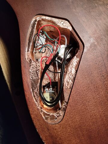 Kisméretű legalja potik és gagyi drótok vannak benne. A gyári pickupjai rettentő gyengén szólnak, feleakkora jelet sem adnak le, mint a DiMarzio D Activator X az RG420-amban. Mindent kicserélek benne, ha majd megérkeznek a Fleor pickupok hozzá. -