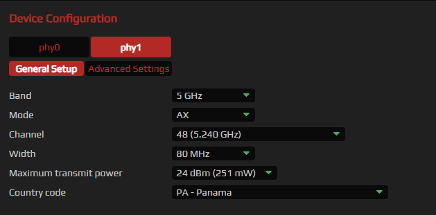 Mindkét sávon Panama beállítás mellett is ugyanígy van ez. Bár személyes véleményem szerint 500mW fölé vinni már úgyse nagyon éri meg, mert sokra nem mész vele, legfeljebb 1 km-ről is látszik majd az SSID, de a kliens eszköz úgysem fog tudni visszakommunikálni a router felé, a maga "kis" teljesítményével.