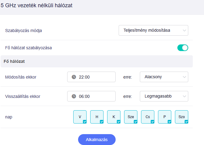 Ezen beállítások mellett beállítható bármelyik csatorna egészen 33 dBm-ig a 2,4GHz-en illetve 32dBm-ig az 5GHz-en.