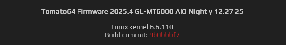Linux GL-MT6000 6.6.110 #0 SMP Sun Oct 19 16:37:45 2025 aarch64 GNU/Linux