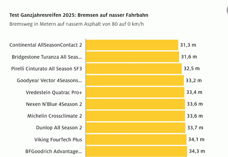 ADAC 2025-ös téli vs 2025-ös 4s nedves féktáv top10.