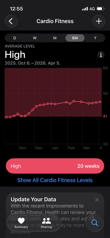 Heti 2-3 alkalom. De mint látszik, előtte is teljesen rendben volt az érték. Korábban is ez történt, amikor lefogytam, vagy amikor elkezdtem futni. Viszont most megfigyelem, hogy segít-e a súlyzós edzésben vagy hátráltat a több futás és a még jobb VO max érték. -