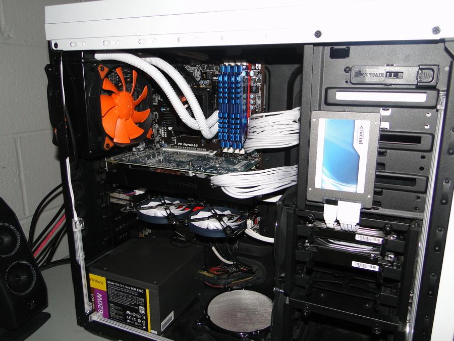 Nekem annyi jutott eszembe, hogy mivel a Sharkoon levegője telibe fújja a VGA-t a hossza miatt, lehet teljesen felesleges felfele fújnia a levegőt és érdemesebb lenne alul kiszívni.