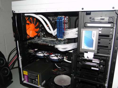 További ventilátorok: A proci hűtője hátrafújta a levegőt, a VGA dupla ventilátorai pedig részbe le, részben hátra.
