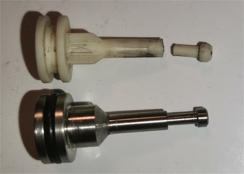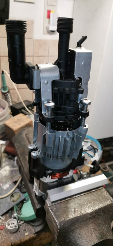 Igazából más baja volt, mikor elkezdtem szerelni. 2005 elején vettem a gépet. Tavaly őszig bírta (20,5 évig). Épp a medencét mostuk, mikor egyszer csak csattant egyet, és elkezdett orrán száján spriccelni. Aztán szédszedtem, megnéztem, hogy mi a baja. A szivattyútestben kinyomott egy O-gyűrűt. Mivel műanyagből van és véglegesen össze van szegecselve, nem szerelhető. Aztán később kaptam egy donor gépet a tesómtól, aminek egyéb baja volt. Most, hogy kellett ismét mosnom, tegnap nekiálltam. Átraktam a donorból a szivattyúrészt. Aztán valamit elcsesztem összerakáskor, és letörtem azt a pöcköt. Aztán átraktam a donorét, és valahogy az is letört. Na mondom: "fogd meg a söröm", és akkor csináltam egy újat a savállóból.