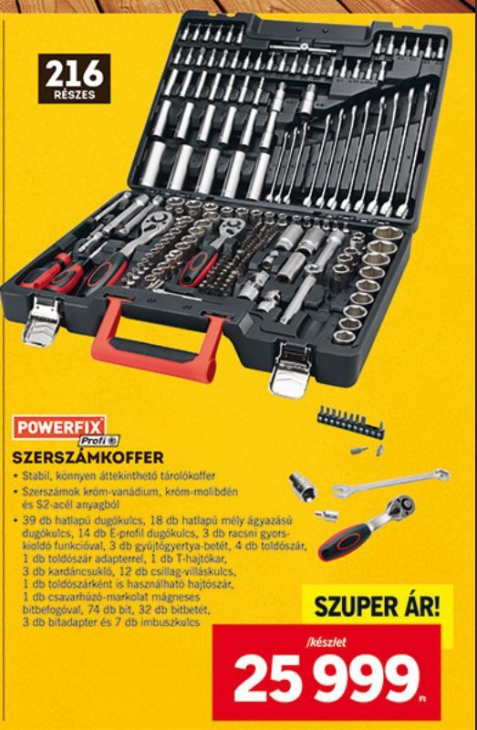 Sziasztok! 10.30 tól ujra lesz a lidl-ben a 216 részes dugókulcs készlet. van erről valakinek valami véleménye/tapasztalata ? hogy birják a strapát ? Parkside mellett néztem a Yatot valamint a Neo tools-t is, azok jobb vételek lehetnek ?