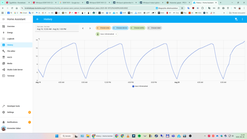 A 8 éves Whirlpool No Frost-os hűtőnk hűtő része a következő kép szerinti hibát produkálja, 6 óra alatt felmelegszik kb 16C-ig, majd 2 óra alatt visszahűl a normális 4-5C-ra.