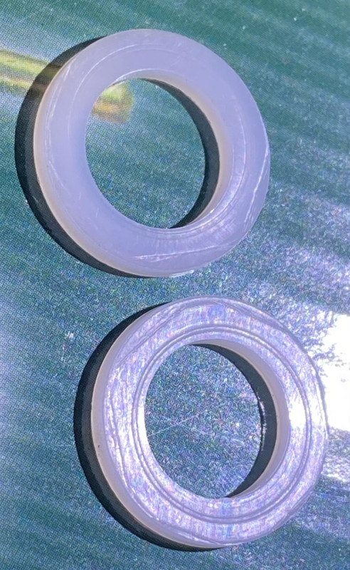 Amikor nem húztam meg eléggé, akkor nem rajzolódott bele rendesen a szelep mintája a tömítésbe (felső kép). Egy másik kapufa meg úgy sikerült, hogy odacsíptem egy ecsetszőrt (azzal takarítottam előtte). Aztán volt, ami rendesen elcsúszott a középponttól.