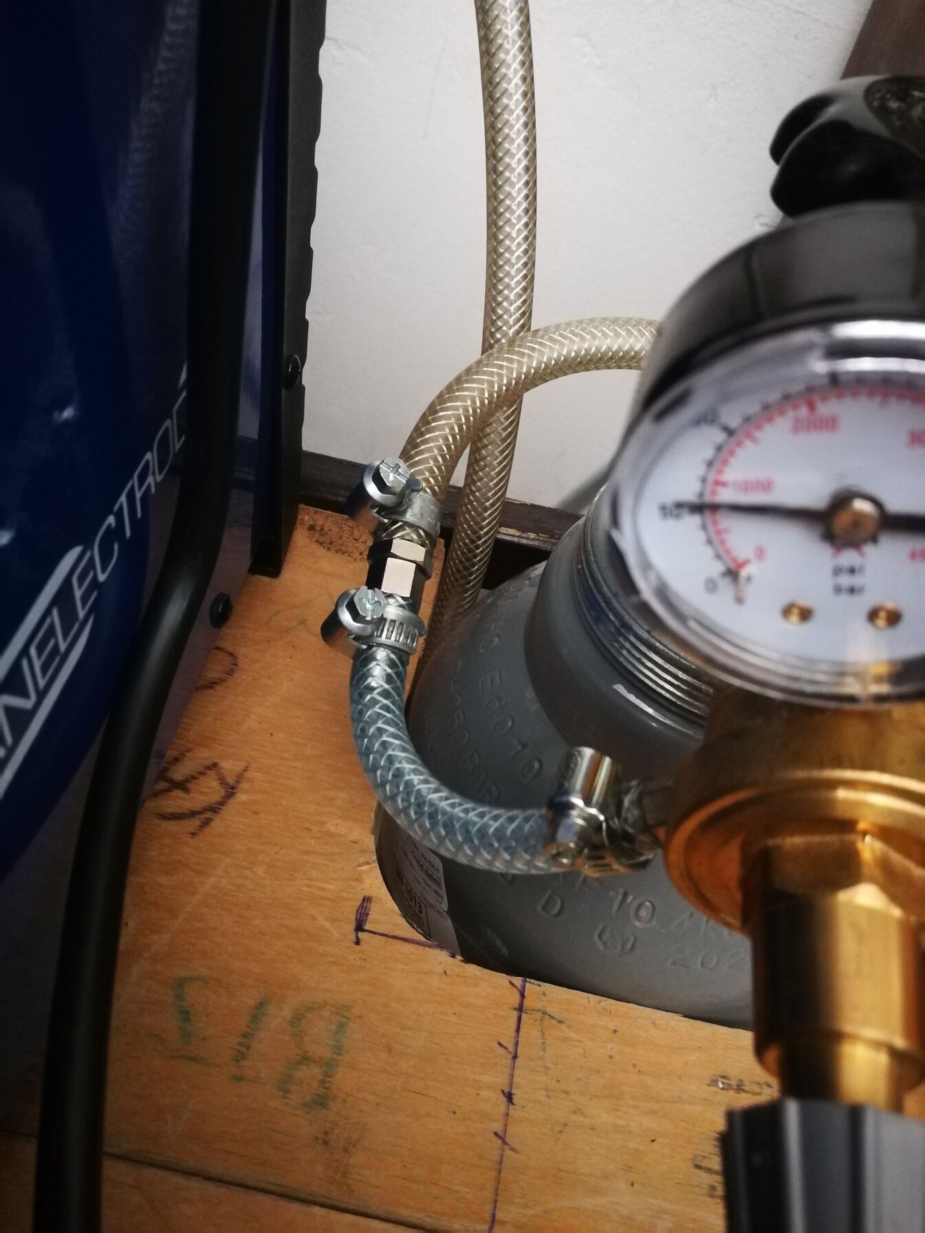 A másik képen az látszik, hogy amikor visszaszereltem a gyári 6mm-es szelepet, arra csatlakoztattam egy 6mm-es belső átmérőjű kb. 10cm csövet. Ez van átalakítva két egymásba csavarható szeleppel (az egyiknek 8mm a másiknak 6mm csőcsatlakozója van) a 8mm-es csőhöz, a képen ott fogja két bilincs.