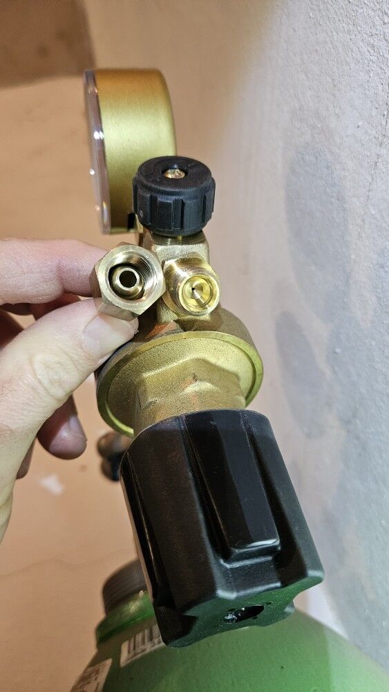 Ez a reduktor a korgonon van, a szénsavon egy mikyreg teljesít szolgálatot. A hollandert szoktam letekerni a reduktorokról és úgy cserélem meg a csövet, hogy miből menjen a gépbe. Számtalanszor belenéztem már így a kis hollanderbe, hogy van benne egy mittomén 5ös furat. Dehogy a közcsavarban ilyen kicsi van, azt nem vágtam