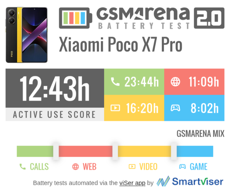 Nincsenek laboratóriumi körülmények, egész egyszerűen a GSMArena általános felhasználási szokások mellett teszteli az összes telefont. A csúszkákkal pedig meg lehet nézni, hogy mire számíthat a leendő tulaj üzemidőt tekintve aszerint, hogy mennyit telefonál, böngészik, streamel, vagy játszik.