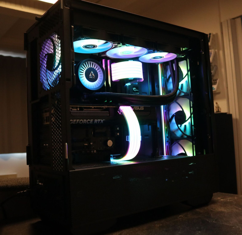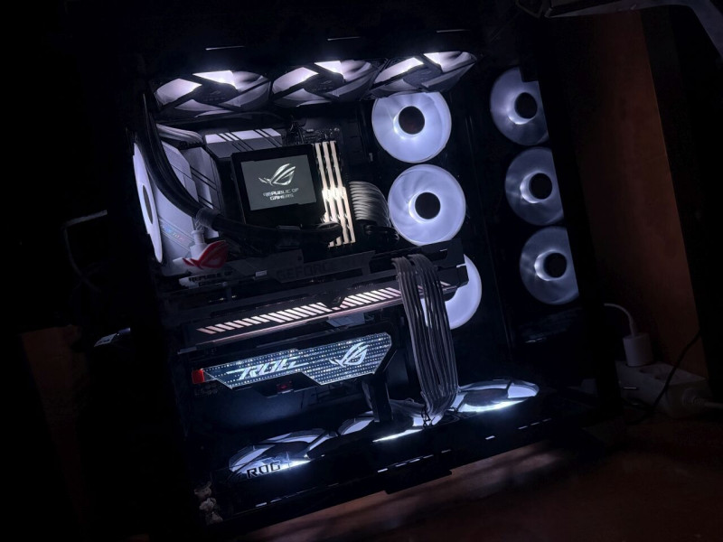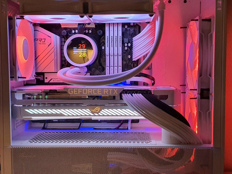 Asus Rog B550-A - R5 5600X - Asus Rog Ryujin II 360 ARGD- Asus Rog RTX 3070 White - Rog Herculx vga stand - 32GB DDR4 - Lian Li O11 ROG - Fehér harisnyázott kábelekFelsó ( Msi motyókból ) :