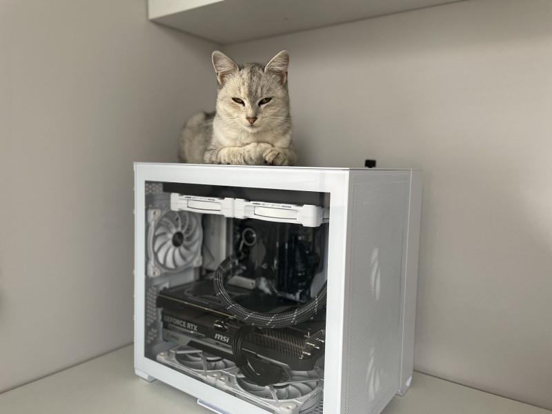 Remélem az új jövevény a gépbe nem fog belehányni, a teteje is rácsos és mikor a VGA küldi fel a forró levegőt, macskáknak az kész wellness.