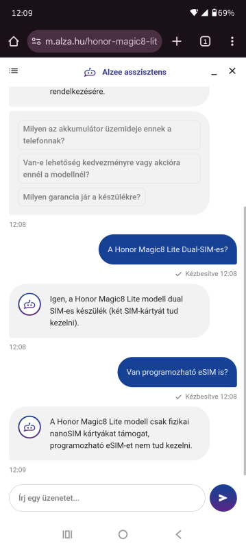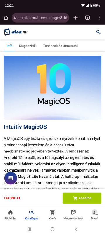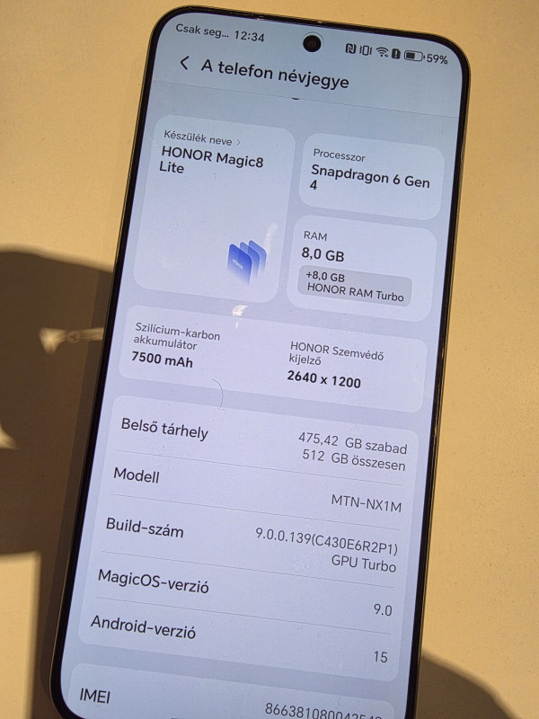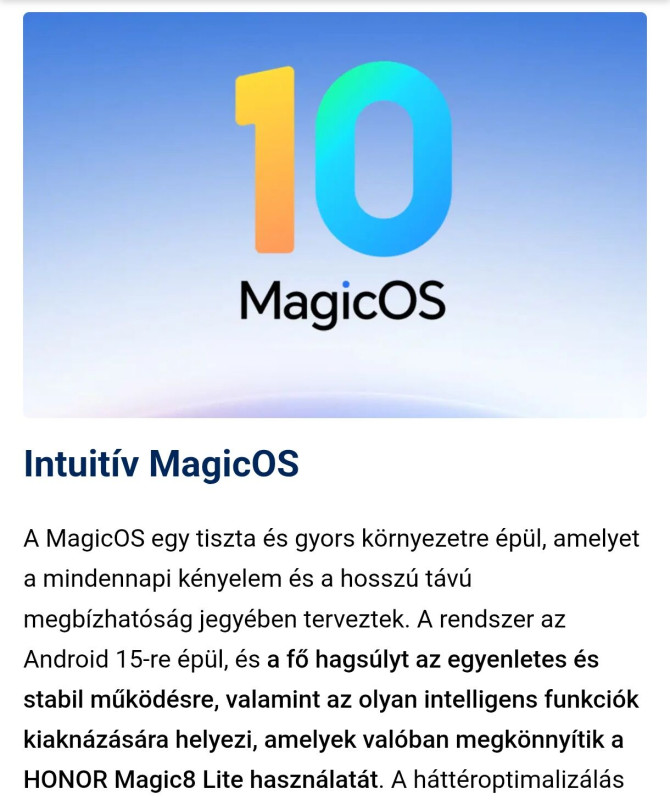 - Honor Magic 8 Lite 8/256GB Midnight Black használt, újszerű garancia 2029.02.11-ig