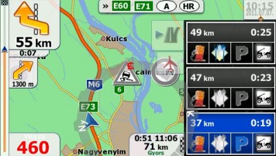 Állíts be pl. benzinkutat, éttermet, szervízt (de ne konkrétat, hanem a fő menüt), és sztem engedélyezd is ezeket a poikat, majd prósza autópálya. Nem mindig van mindenhol (mint látható is a képeken), de nyomj egy tesztutat pl. pest felé, és előtte 40-50 km-el már szokott több mindent is jelezni (persze máshol is, csak meg kell találni)