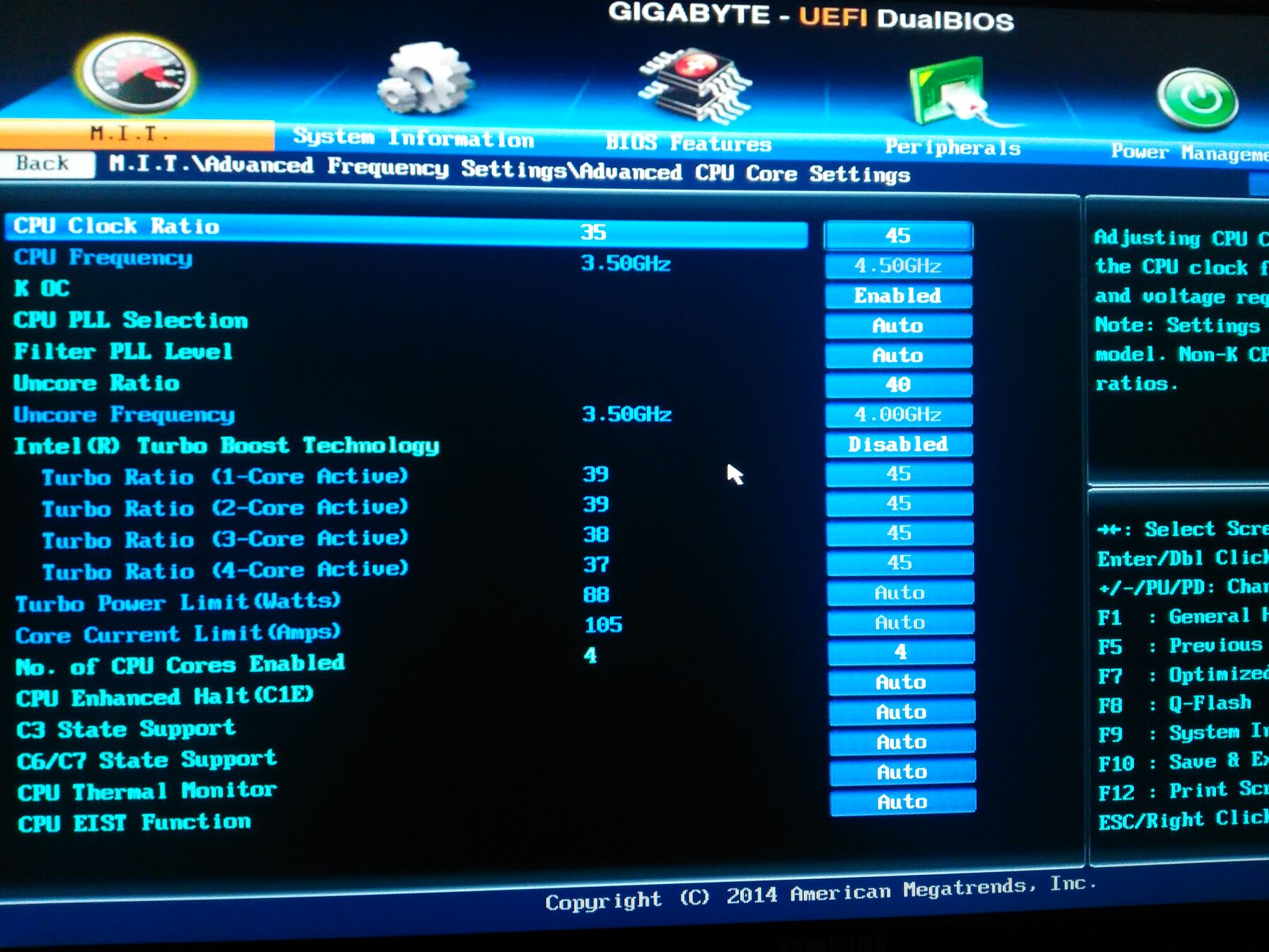 Irányadónak nekem pl a 4.5ghz egy Giga lapban úgy ment simán, hogy: Clock Ratio 45, Uncore ratio 40, Turbo off és 1.175V vcore 1.67 VRIN 1.1 RING feszültségek, mást nagyon nem kell állítani hozzá. De ez proci függő lehet a tiednek majd kicsit több/kevesebb kell/elég (kékhalál a kevés fesz ismertetőjele)