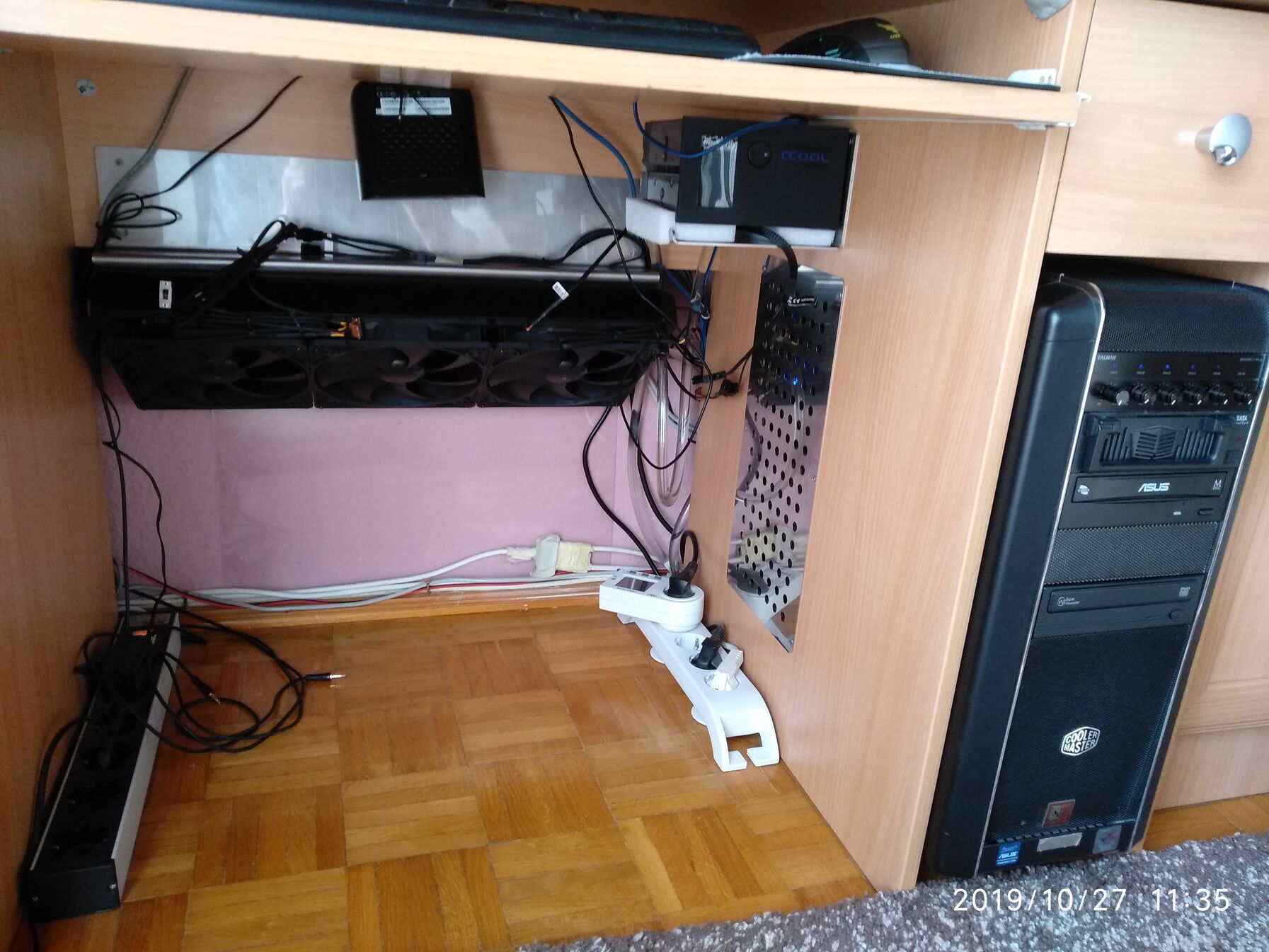 szerk: Ami a képen nem látszik: a gép mögött kívül van egy 120-as radiátor ami szintén srégen fúj felfelé, az a vega64 LC radija