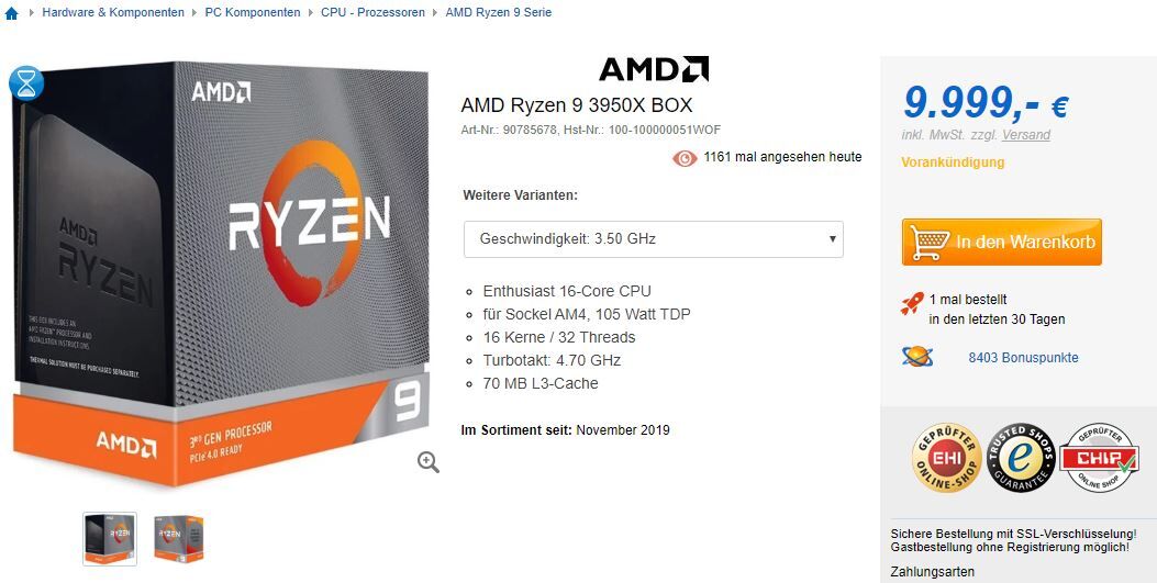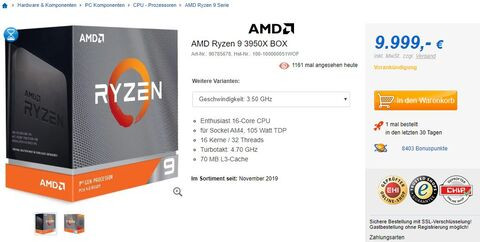Ezzel szemben a 3950X + 100 ezres X570 lap + DarkRockPro 4 v D15 érezhetően jobb. Nyilván ezért a 3900X vagy 3950X gyakorlatilag elérhetetlen. Ahogy az új Threadripper 3at sem fogod tudni megvenni, mert már a gyár előtt sor áll érte az MSRP ár felett bőven. Vannak olyan pofátlanok, akik 10 ezer euróért árulják a 3950x-t poénból: