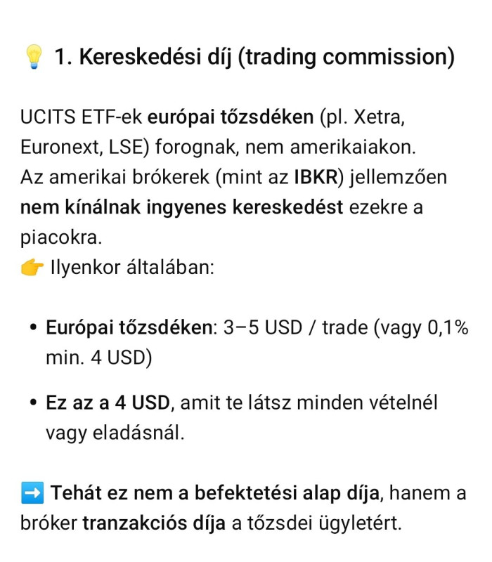 Ha veszek IB-n egy UCITS ETF-et akkor az ETF ára +4USD költség. Tehát ha egy ETF 10USD (csak az egyszerűség kedvéért USD) a bekerülésem 14 USD lesz ami óriási. Ez a költsége az UCITS ETF-nek.