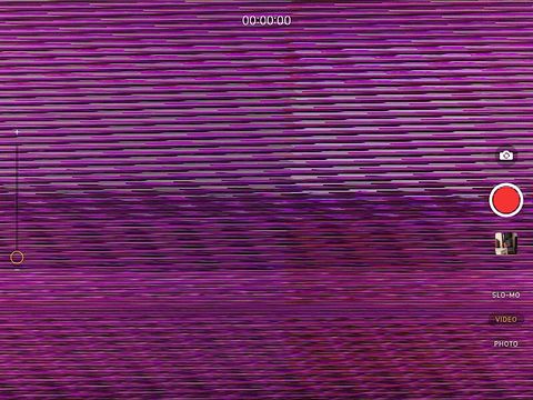 A hatso kamera ezt csinalja 1-2 perc video felvetel vagy videobeszelgetes utan. Lila csikos kepernyo.