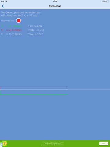Nincs bekapcsolva a forgatás zárolása. A programban az accelerometer rendesen működik,valós időben mutatja a mozgásokat,viszont a gyroscope egyenes vonalat húz.