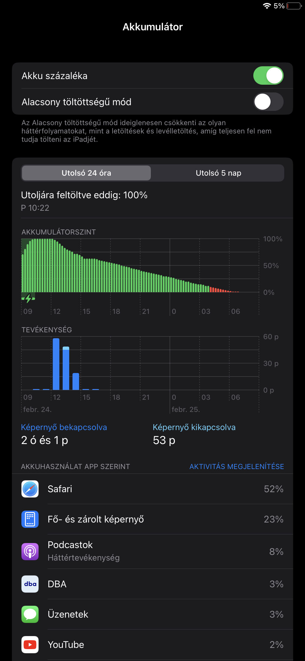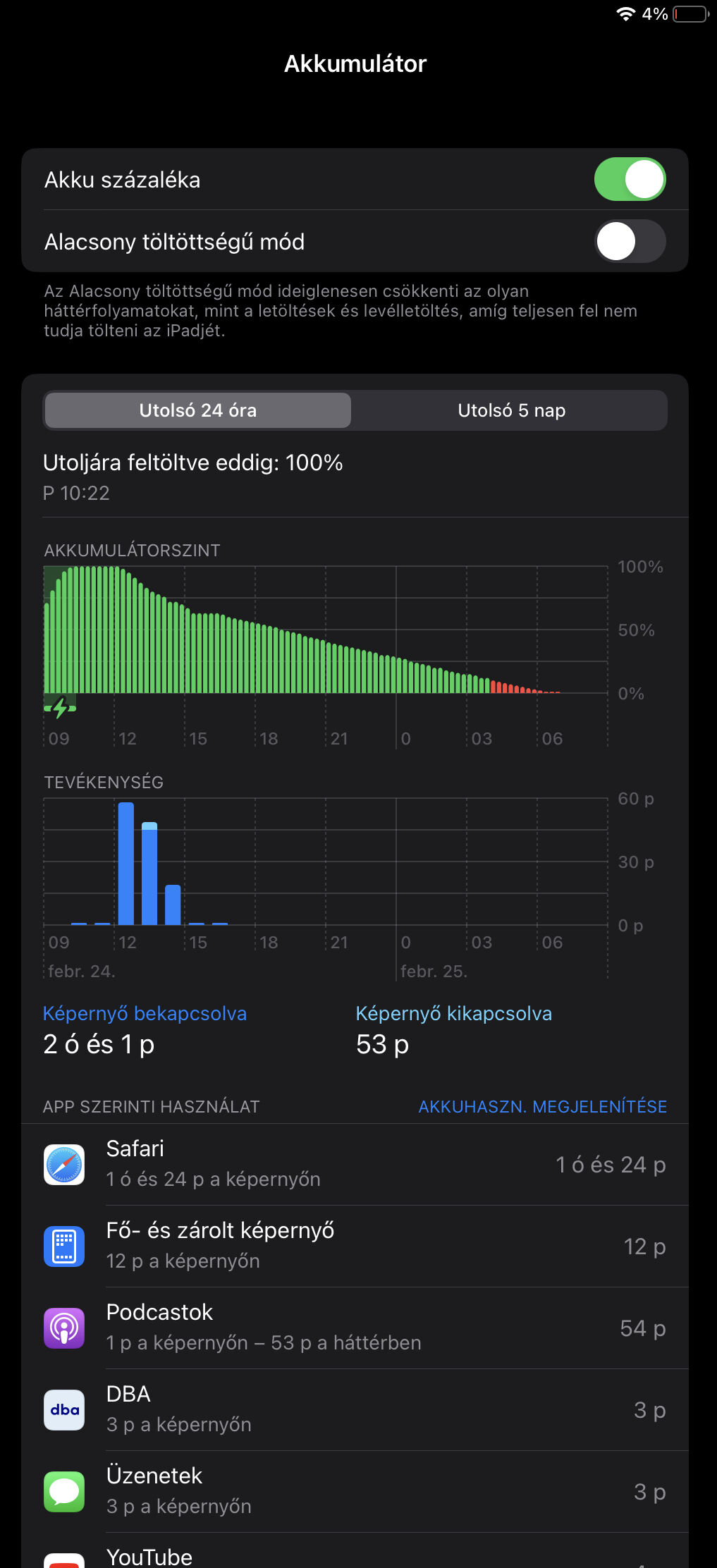 Mondjuk azt nem értem, hogy amit az iPhone-ba bepakoltak kijelzést az akku elhasználtságáról, azt miért nem teszik legalább be az iPad-be is... -