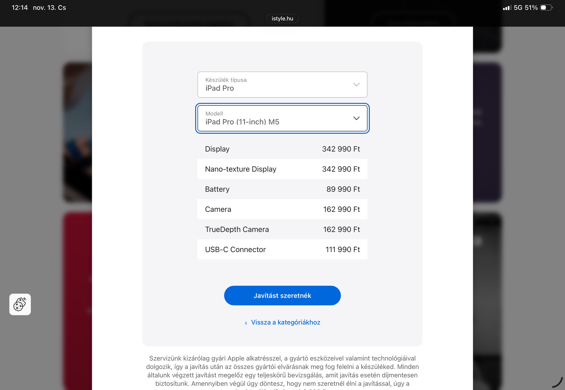 A legnagyobb rizikó az az hogy a 3. Generációsban nem lehetett semmit se cserélni, csak fődarab csere jöhetett szóba a hivatalos szervízben (almárium pro), amit az istyle szervíz kalkulátora is megerősít, ugyanis elvileg nem lehet szétszedni sehogy se. [kép] 340 ezer forintot meg ugye nem adunk ezért hogy kapjunk egy felújított tabletet.Na most az M5-re ezért szeretnék apple care+ biztosítást, de időközben nyomogattam az istyle kalkulátort, az M4 meg az M5-re már írja a darabok cseréjének a lehetőségét, lehet akksit meg kijelzőt is cserélni elvileg. [kép] [kép]