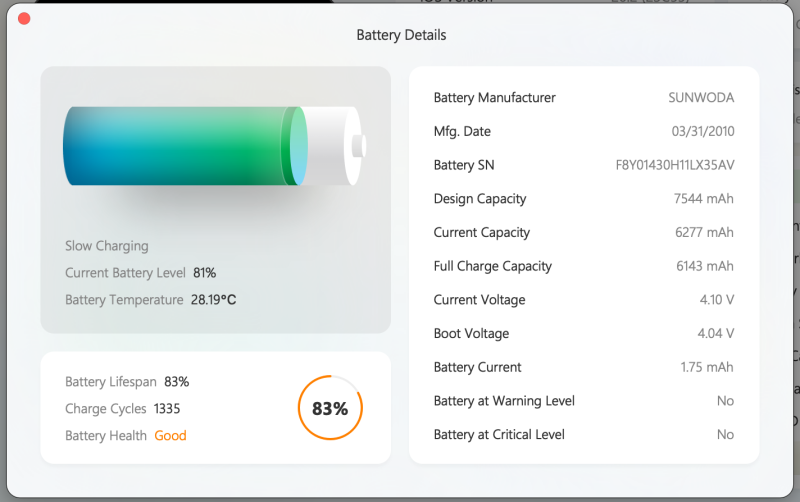 NominalChargeCapacity (current maximum capacity): 6283 mAh
