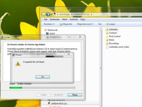 B: Windows 8 ( új gép ) szeretném ide átrakni a zenéimet.A probléma az, hogyha új gépen próbálom az itunes-ra dugni az iPod-omat, akkor törtli róla az összes zenét, azt szeretném, hogy ez ne történjen meg. Segítsetek ha tudtok. Köszönet!