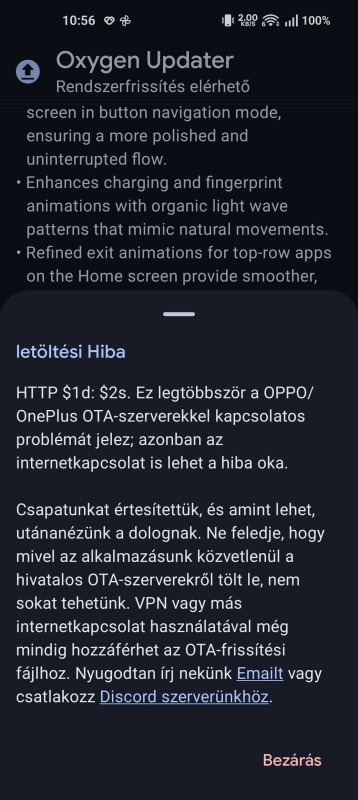 Az OTA-n valo frissitést irja az oldal ahol vettem , hogy ne frissitsd OTA-n hiába adja fel. Az Oxygen Update -on viszont a teljes legfrissebb 6,2Gb-os EU Romot adja fel és le is lehet tölteni és ugye az Oxygen Update ahhoz mérten ,hogy éppen milyen Rom van a telon jeleniti meg a frissitést és az EUS Rom jelent meg rajta.