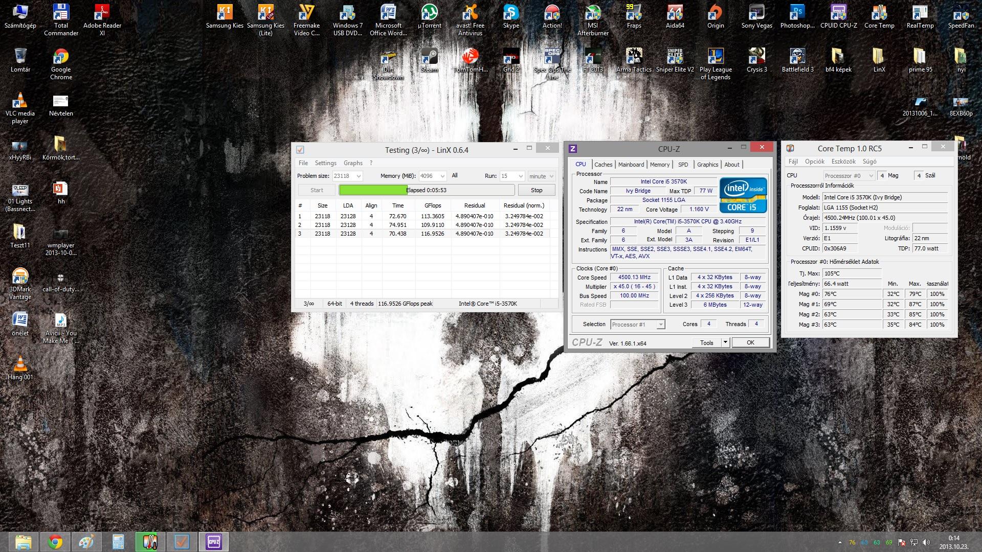 Gáz ha egy 3570k 4.5 ghz en prime 95 el felmegy 100-105 fokra? Fagyást nem kapok de azért kicsit soknak tűnik... Tuningot most próbáltam először a biosban mondtam neki 4.5 öt és a többit belőtte magának.