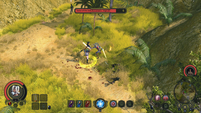 Ez még nem is lenne akkora baj, viszont jelen állapotában a Sacred 2 Remaster még tele van bugokkal. A 64-bit ellenére sokszor crash-el (dob ki az asztalra), bár ez változó, valakinél sűrűn előjön, mások ezt nem tapasztalják. Az ellenfelek sokszor beragadnak, közelharcos karakterrel nem tudom őket megsebezni (utolsó képen), mert nem érek fel odáig. Emellett 4K felbontásnál a kurzor nagyon összemegy, plusz még az ellenfelek hitbox-a is kicsi, így nehéz pontosan kijelölni a célpontot. Ha mellé célzol, akkor azt mozgásnak veszi, így gyakorlatilag csak körbe-körbe jársz a célpont körül.